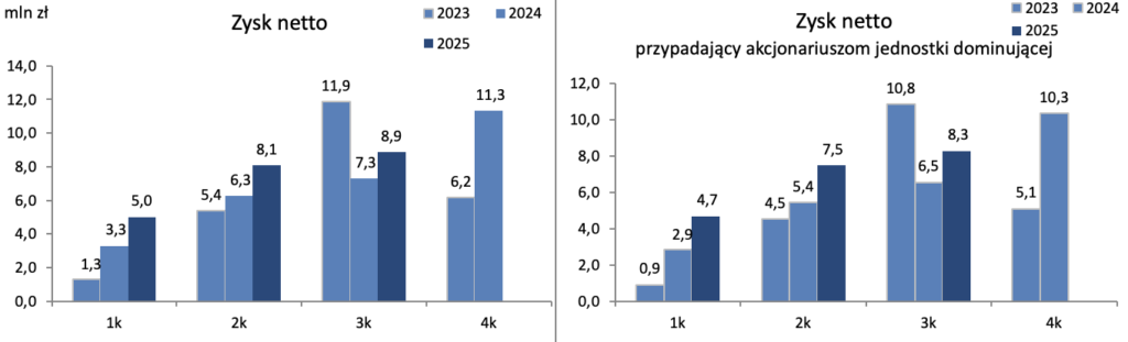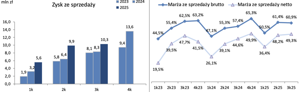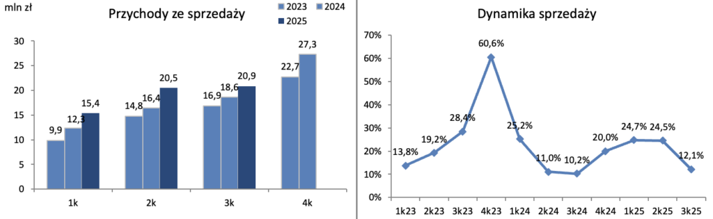 Wyniki 3 kwartału 2025 r. przynoszą kontynuację dwucyfrowego wzrostu, choć z niższą dynamiką przychodową niż w poprzednich kwartałach.