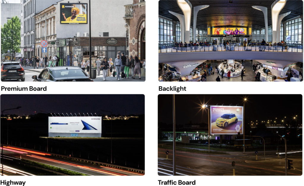 Inne produkty to backlight (podświetlane od tyłu nośniki) oraz klasyczne i cyfrowe billboardy.
